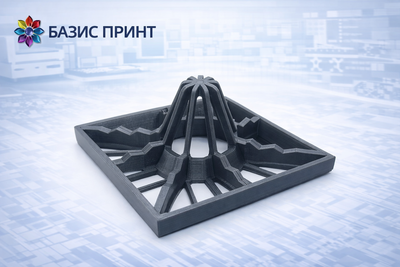Демонстрирует стабильность геометрии, аккуратную печать мелкого рельефа и качество поверхности.
